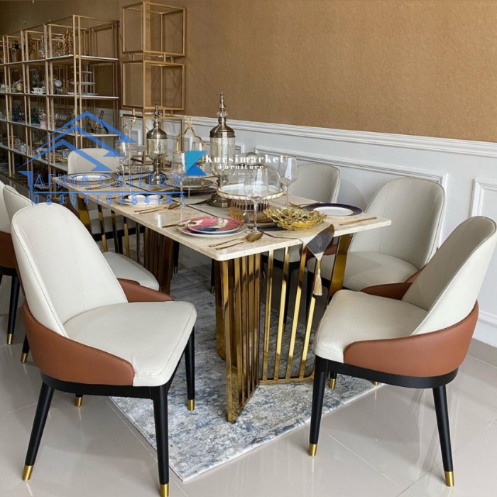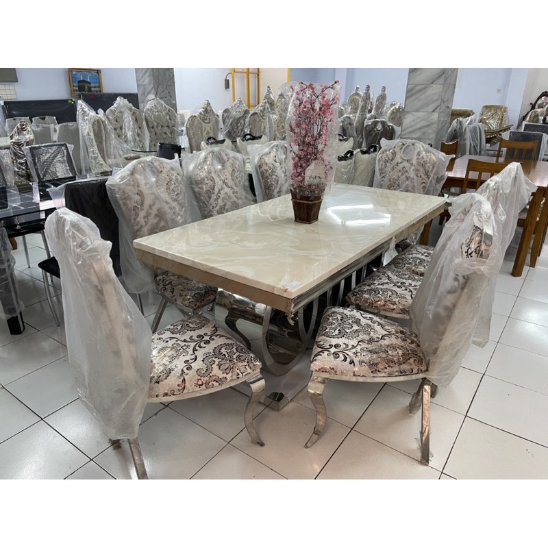 Jual Meja Makan Stainless Top Marmer Kursi 8 Stainless Meja Makan Marmer Kab Jepara Maulaya Furniture Tokopedia